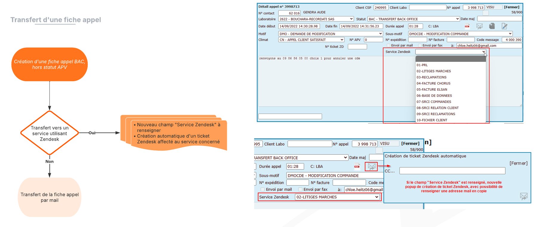 - la troisième c'est lors du transfert d'une fiche appel vers un pôle utilisant Zendesk :