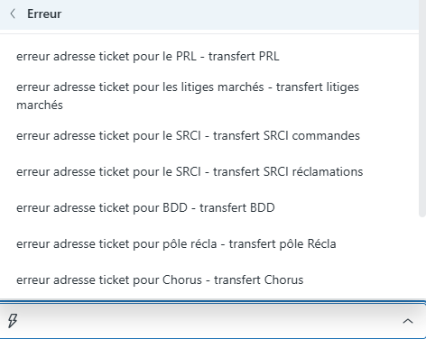 soit le demandeur s'est trompé d'adresse mail générique (exemple : il a écrit au PRL alors que c'était pour le SRCI) alors il suffit d'utiliser l'une des macros "Erreurs" qui changera la marque, le groupe et le formulaire du ticket ;