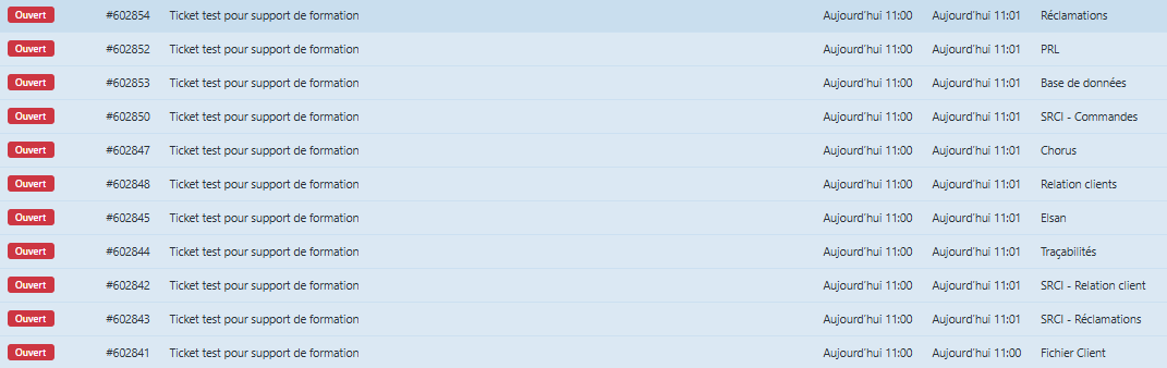 Les éventuelles autres adresses mails génériques mises en copie (et travaillant sous Zendesk) reçoivent également leur propre ticket avec les mêmes informations : dans notre exemple 12 tickets ont bien été créés :